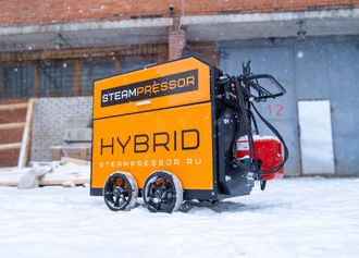 Самое компактное исполнение На строительной тележке Паропровод 20 м, паровой пистолет Работа в режиме АВД и пеногенератора |